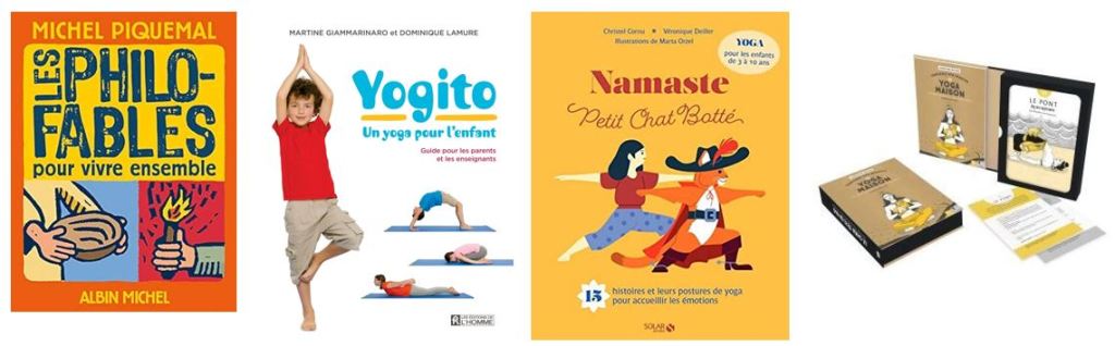 ► Yogito, un yoga pour l’enfant de Martine Giammarinaro et Dominique Lamure (Editions de l’Homme). Ce livre contient toutes les postures principales et propose de petits enchaînements, ainsi que des guides pour la relaxation.